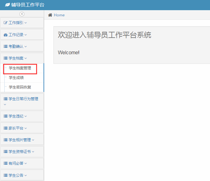 在学生档案(辅导员)界面可以进行几个如下操作: