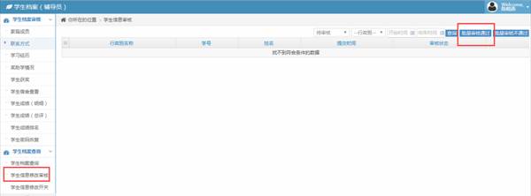 学生提交修改基本信息后,需要辅导员审核,只有辅导员审核通过,这些修改后的字段才会进学籍。输入所带年级学生学号或姓名,点击查询,搜索出学生伙伴及,选中学生或班级,点击右侧“批量审核通过”按钮,即可审核通过。