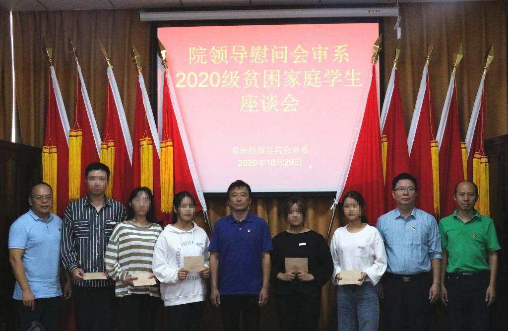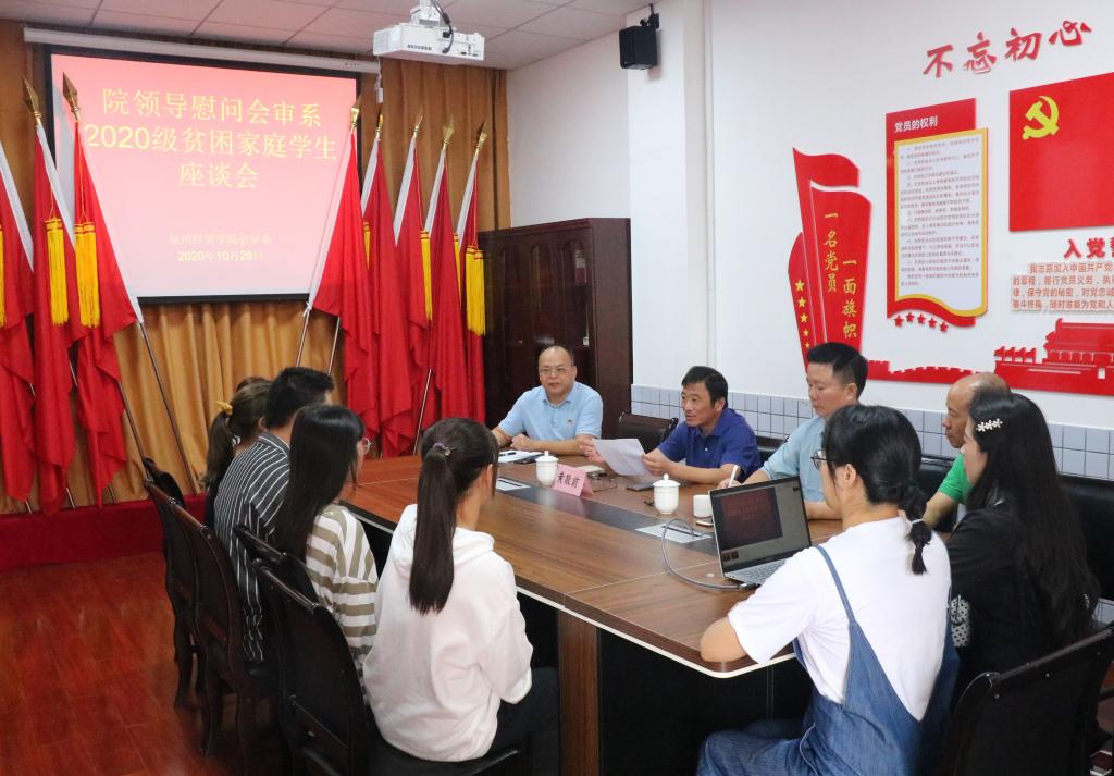 为贯彻落实《福建省教育厅2020年工作要点》中关于“完善精准资助体系,切实保障建档立卡家庭学生不因家庭贫困失学或辍学”的工作部署,进一步提高学院资助工作水平,10月29日上午,学院党委副书记、院长黄敬前到会审系慰问2020级家庭经济困难学生,并与学生进行了亲切座谈。