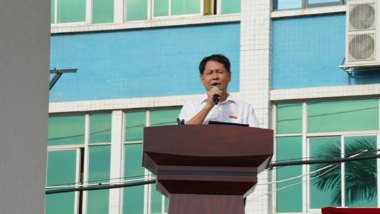 陈金通副书记向远道而来、不辞辛劳承担本次军训任务的教官们表示衷心的感谢和崇高的敬意!向刚刚踏入经贸学院这片热土一个多月,满怀憧憬与梦想的2024级新生致以最热烈的欢迎和美好的祝愿!他简要介绍了学校的办学历史和取得的成绩。陈副书记强调,军训是大学生活的重要一课,它不仅是一次身体上的锻炼,更是一次心灵上的洗礼。希望全体新生珍惜难得的机会,以饱满的热情、昂扬的斗志、顽强的毅力,投入到每一项训练中去。要用自己的实际行动,展现经贸学子的风采和魅力,让青春在汗水中闪光,让梦想在奋斗中绽放。希望每一位同学都能以这次军训为契机,不断提升自己的能力素质和个人修养。希望教官们严格要求、科学施训,既要确保军训的安全和效果,又要注重人文关怀和心理疏导,让每一位新生都能在军训中收获成长和进步。希望相关部门和辅导员积极配合、做好保障,为军训工作的顺利开展提供有力支持。