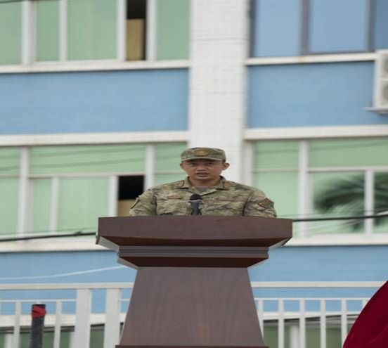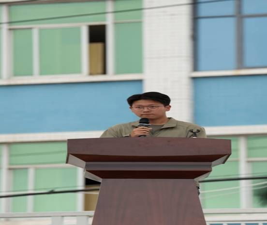 教导员代表承训部队讲话,指出全体参训学员克服了时间紧、内容多、标准高、难度大等诸多困难,发扬了吃苦耐劳、顽强拼搏的精神,展现出朝气蓬勃和成熟自信。他希望同学们牢记军训的艰苦磨练,努力在知识的海洋里扬波击水、奋力求索、创新进取,成为社会的中流砥柱和国家的栋梁之才。
