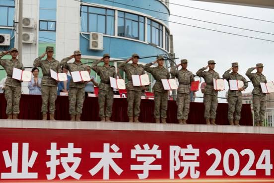 大会宣读了2024级新生军训“优秀班级”、“优秀教官” 和“军训标兵”的表彰决定,主席台的领导为获奖班级及个人代表进行了颁奖。