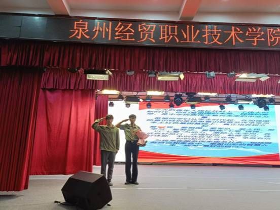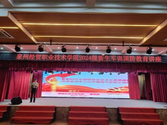 10月22日下午,我院在大礼堂举办2024级新生国防教育讲座。鲤城区“老兵宣讲团”团长、一等战功老兵詹明德同志为我院商务系软件系1004名新生带来了一场别开生面的宣讲。